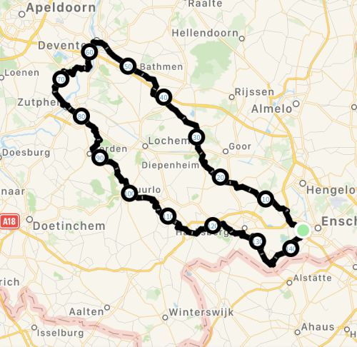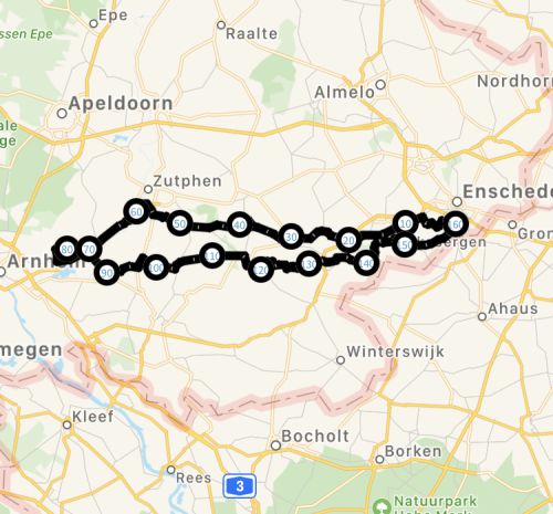 Hieronder staan diverse routes geordend op afstand.